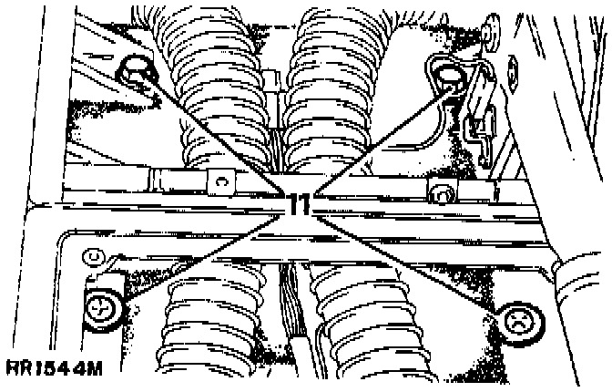 31. Remove the bolts securing the left hand mounting bracket to chassis.