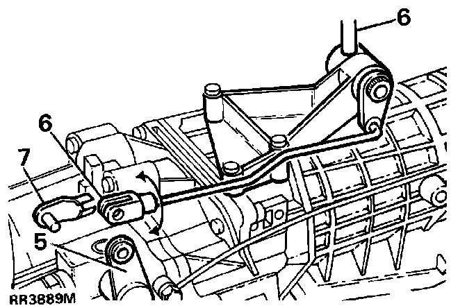 6. Set transfer gearbox lever in a vertical position. Rotate clevis on end of rod until hole aligns with hole in selector lever.
