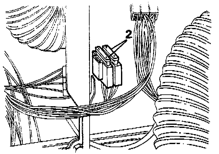 Heated front screen (2) has two 25 amp white, blade type fuses mounted adjacent to the bank of steering column mounted relays. Pull fuse holder off its mounting blade to gain access to fuses.