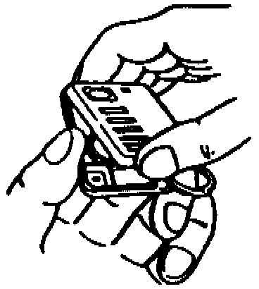 2. While holding the transmitter with the button facing up, remove the top cover by gently lifting the lower end (key chain end) and pulling it. DO NOT PRY!