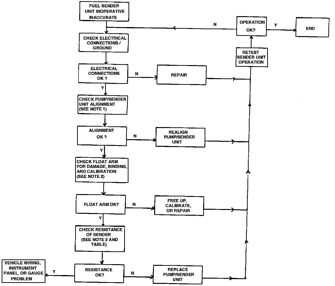 Diagnostic Procedure Use the flow chart if you suspect a fuel sender related problem.