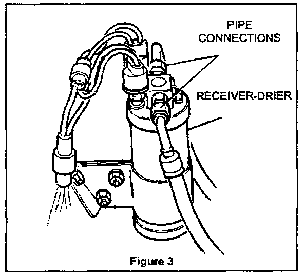 8. Connect A/C pipes to receiver-drier. (Figure 3)