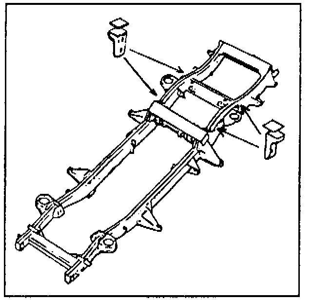 There are a total of four support pads/brackets per vehicle. They are located fore and aft of the rear spring seats on both sides of the chassis as shown in the illustration.