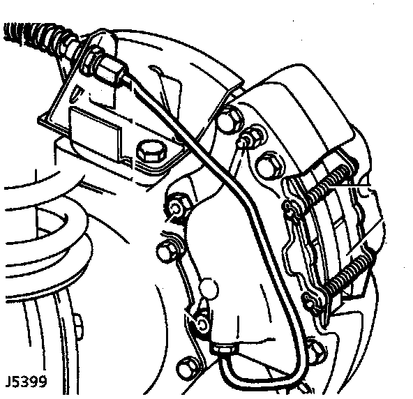 4. Disconnect rigid brake pipe from flexible hose, seal exposed ends to prevent ingress of dirt.