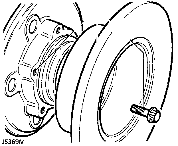 2. Apply Loctite 270, or equivalent, to disc to hub retaining bolts, then tighten to 73 Nm (54 ft. lbs.).