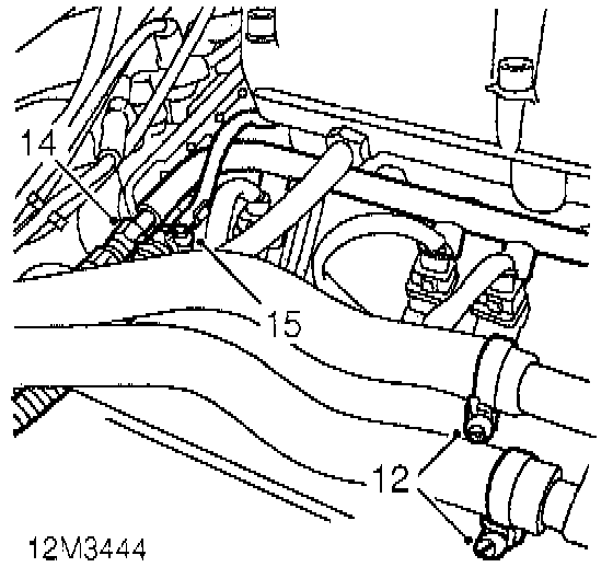 14. Loosen fuel feed hose to rail union, allow fuel to spill and disconnect union.