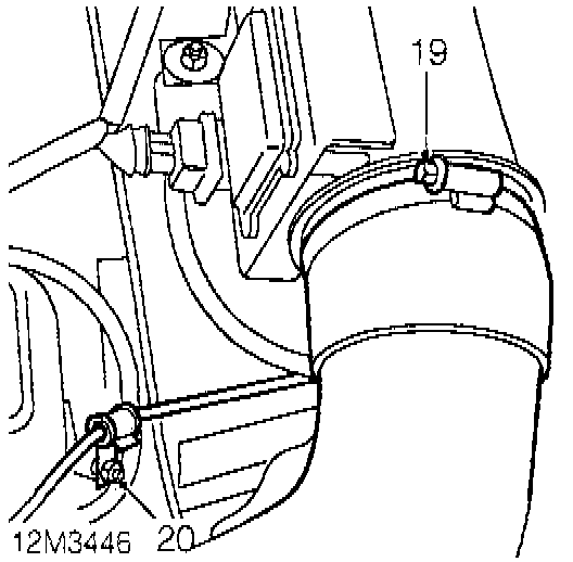 20. Remove nut securing kick-down cable clip to rear of LH cylinder head.
