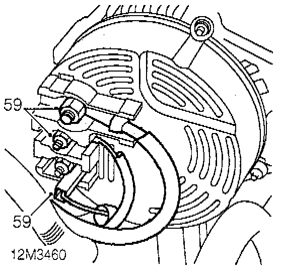 59. Remove 2 alternator terminal nuts and disconnect connector.