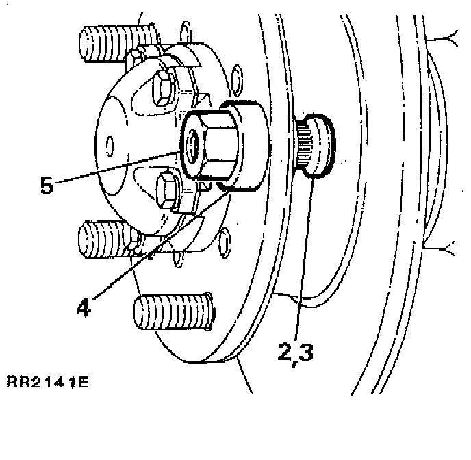 5. Using a M16 x 1.5 nut (5), a slave wheel nut is suitable, pull stud into flange until shoulder of stud abuts flange.