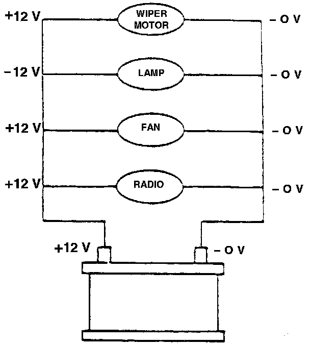 Batteries and AC generators (alternators) apply electrical pressure and cause an electric current to move through a circuit from the positive side to the negative side. But there must be a complete circuit or electrical path made up of wires or other conductors or a current will not flow. If a wire is broken or disconnected, current stops. Circuits are not all alike and electricity does not behave exactly the same in different types of circuits. Therefore, it is important for you to understand the basic kinds of circuits found in an automobile and the way the volts, amps, and ohms behave in these circuits.