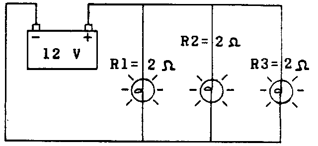 For example, the parallel circuit as shown contains three light bulbs rated at two (2) ohms each