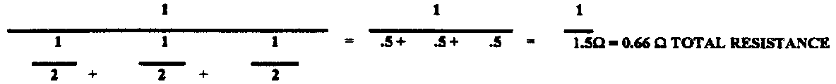 0.5 ohm + 0.5 ohm + 0.5 ohm = 1.5 ohm Total Resistance