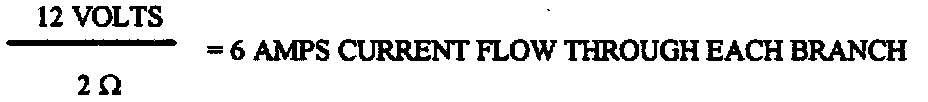 Since each branch of the circuit in our example has two (2) ohms of resistance, the current flow through each branch will be the same.
