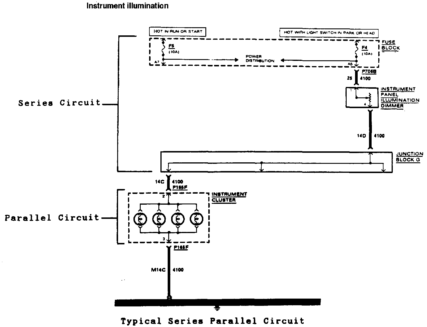 Series-parallel circuits are very common in automobiles. Many parallel circuits in an automobile use a switch that is in series with the circuit to control current flow. They are also used to put a load device in series to drop the voltage of the load devices in parallel. A good example of this type of series-parallel circuit would be the instrument cluster illumination lamps and the dashboard rheostat (variable resistor). The rheostat or dimmer switch varies the voltage to the lights.