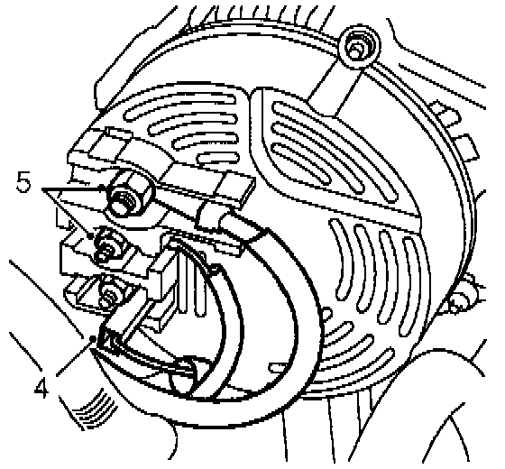 7. Remove 2 bolts securing generator to mounting bracket and collect nuts.