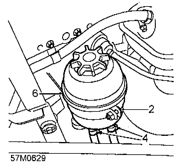 1. Position reservoir, connect feed and return hoses and tighten clips to 3 Nm (2 ft. lbs.).