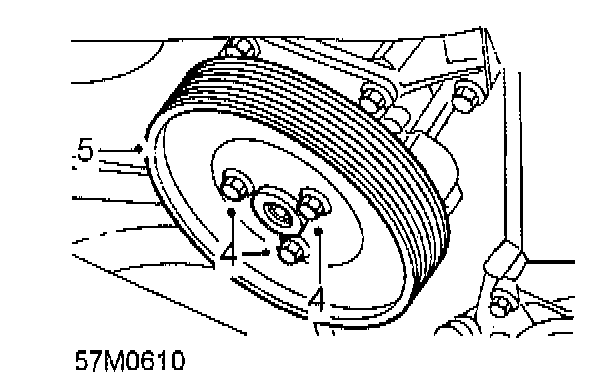 4. Using an Allen key to restrain PAS pump pulley, remove 3 bolts securing pulley to pump.