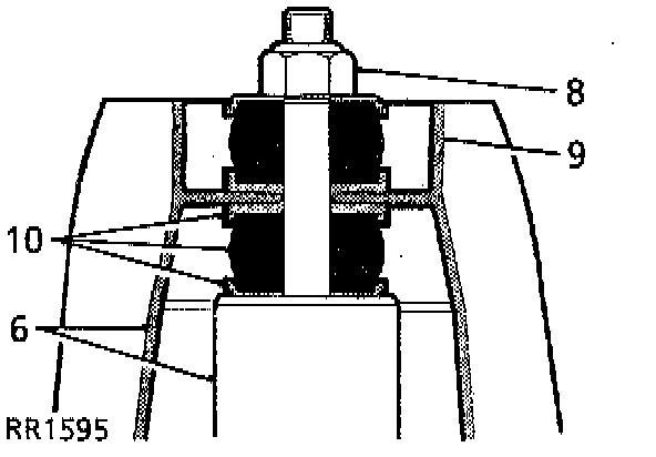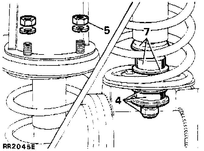4. Remove shock absorber lower fixing and withdraw cupwasher, rubber bush and seating washer.
