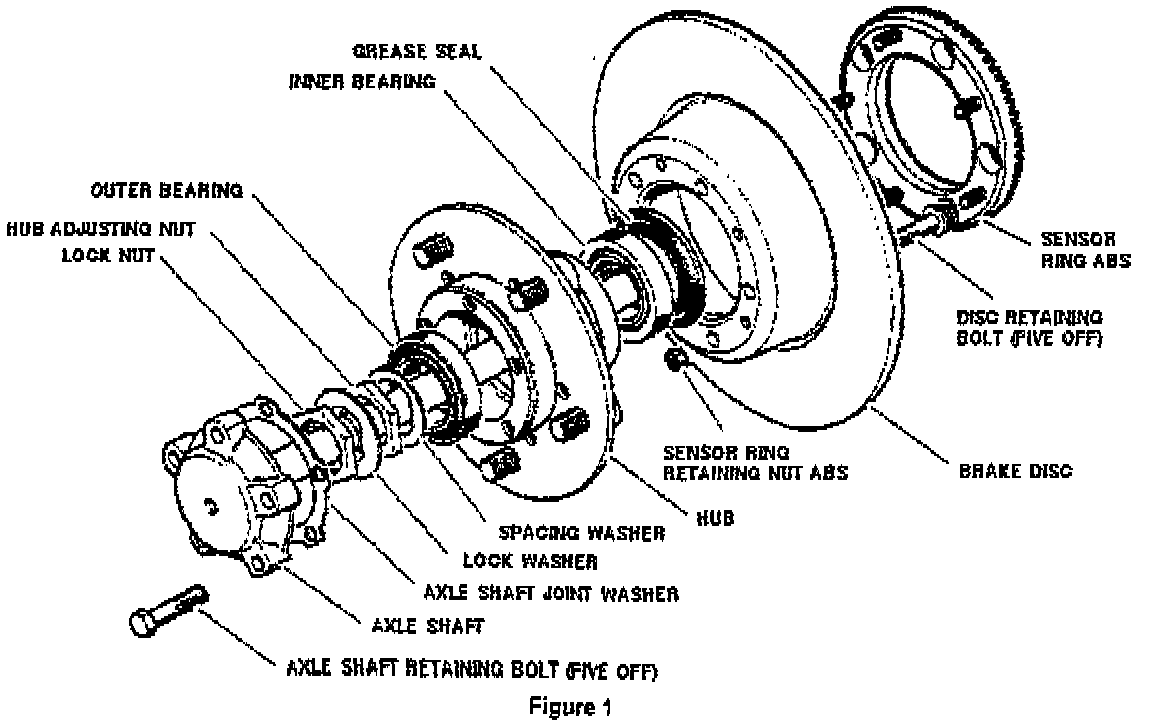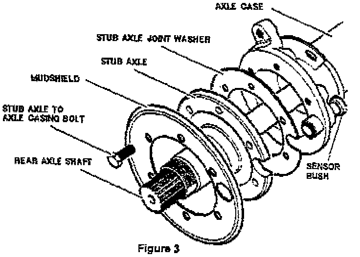 On 1994-96 Discovery vehicles the rear stub axle oil seals may leak. The following procedure has been developed to replace the stub axle seal with an improved design. If the stub axle seal is observed to be leaking, the stub axle seal on the opposite side of the axle must also be replaced.