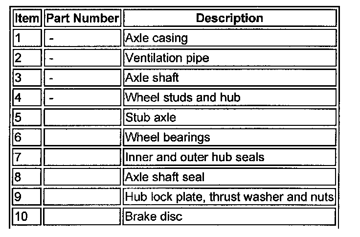 Ventilation of the differential is through a plastic pipe which terminates at a high level. The swivel housings ventilate through axle shaft oil seals into the differential and the hub bearings vent via the oil seals into the swivel housing.