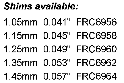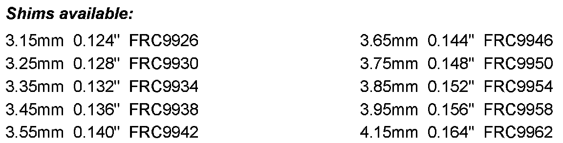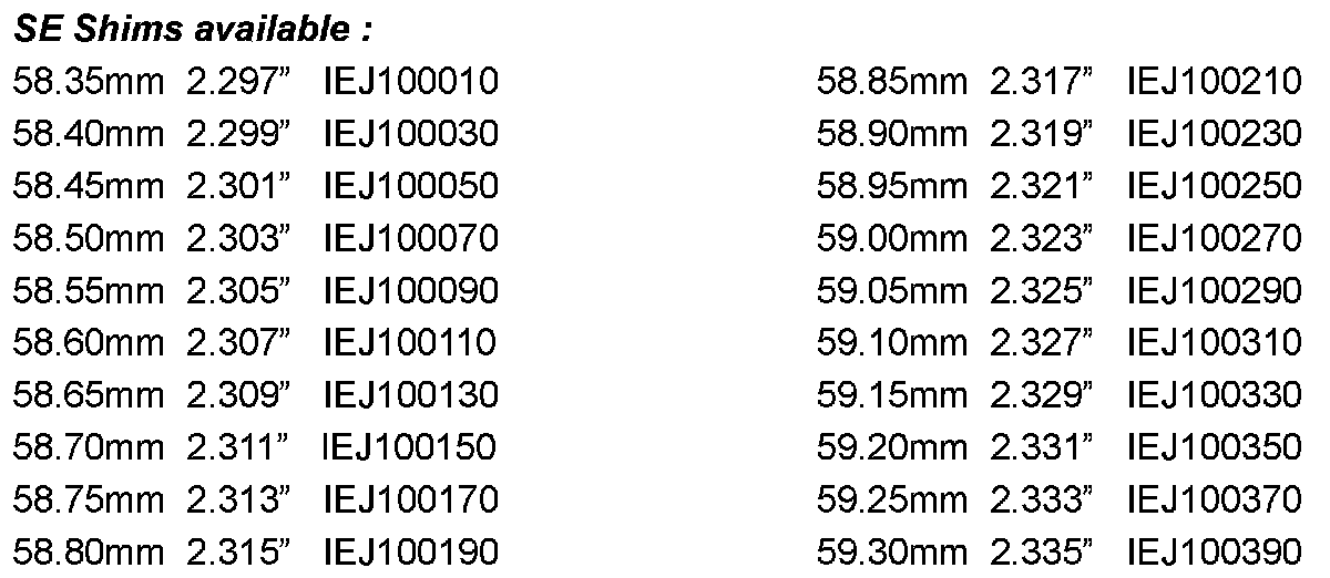 4-10 in. Lb (.5-1.10NM) (4-10 lb. Pull with spring balance) increase in torque over input shaft preload alone. T and Q: Adjust by collapsing spacer FRC 7437. SE: Use shims listed below.