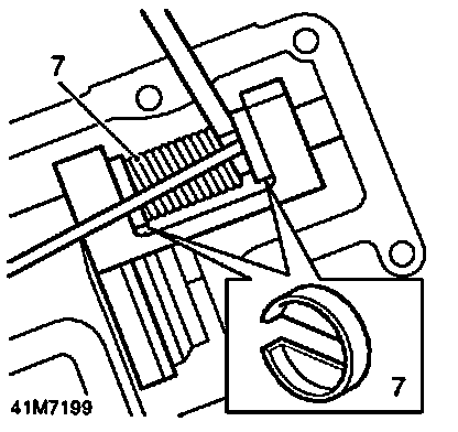 7. Compress differential lock selector fork spring and remove retaining clip from each end of spring.