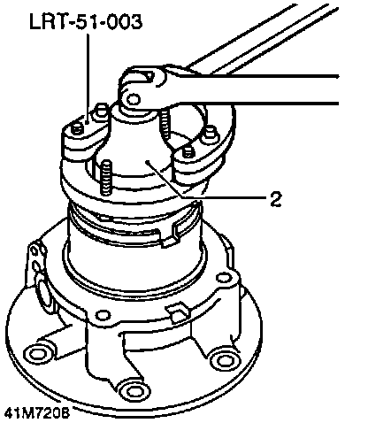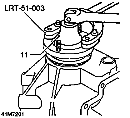 10. Position propeller shaft flange holding tool LRT-51-003 to output shaft flange.