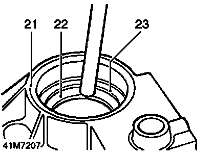 22. Using a soft metal drift, drive differential bearing track out of housing, discard bearing track.