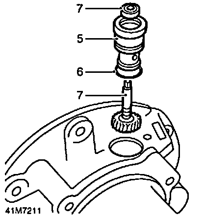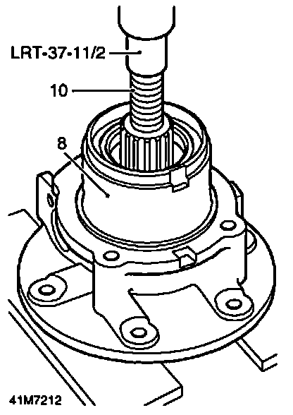 6. Position differential in hand press with thrust button, part of tool LRT-41-001 between press mandrel and differential shaft.
