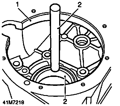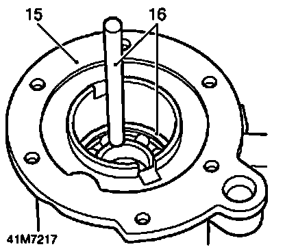 16. Using a soft metal drift, drive output shaft bearing out of housing; discard bearing.