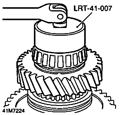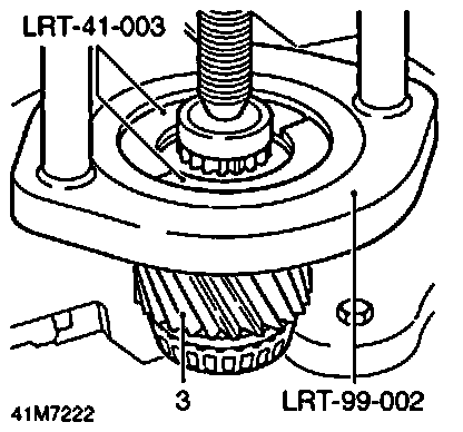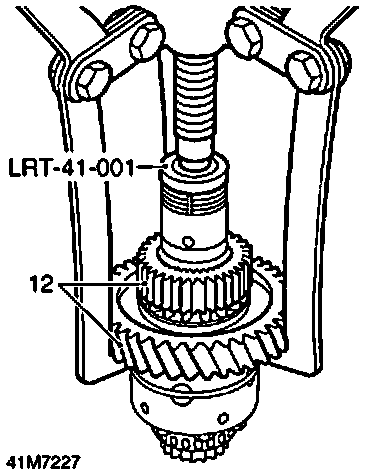 12. Using a suitable puller and thrust button, part of tool LRT-41-001, remove high/low hub and low range gear.