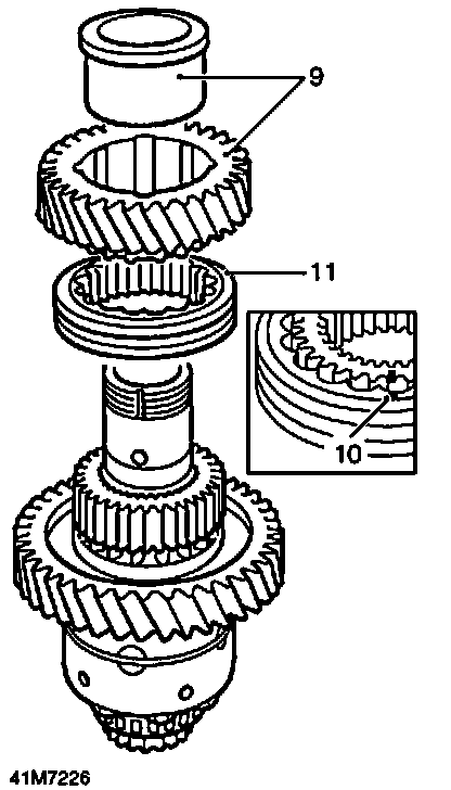 9. Remove high range gear and bush taking care not to disturb high/low selector sleeve.