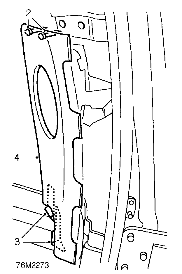 3. Release 2 'E' post finisher retaining clips from lower trim panel.