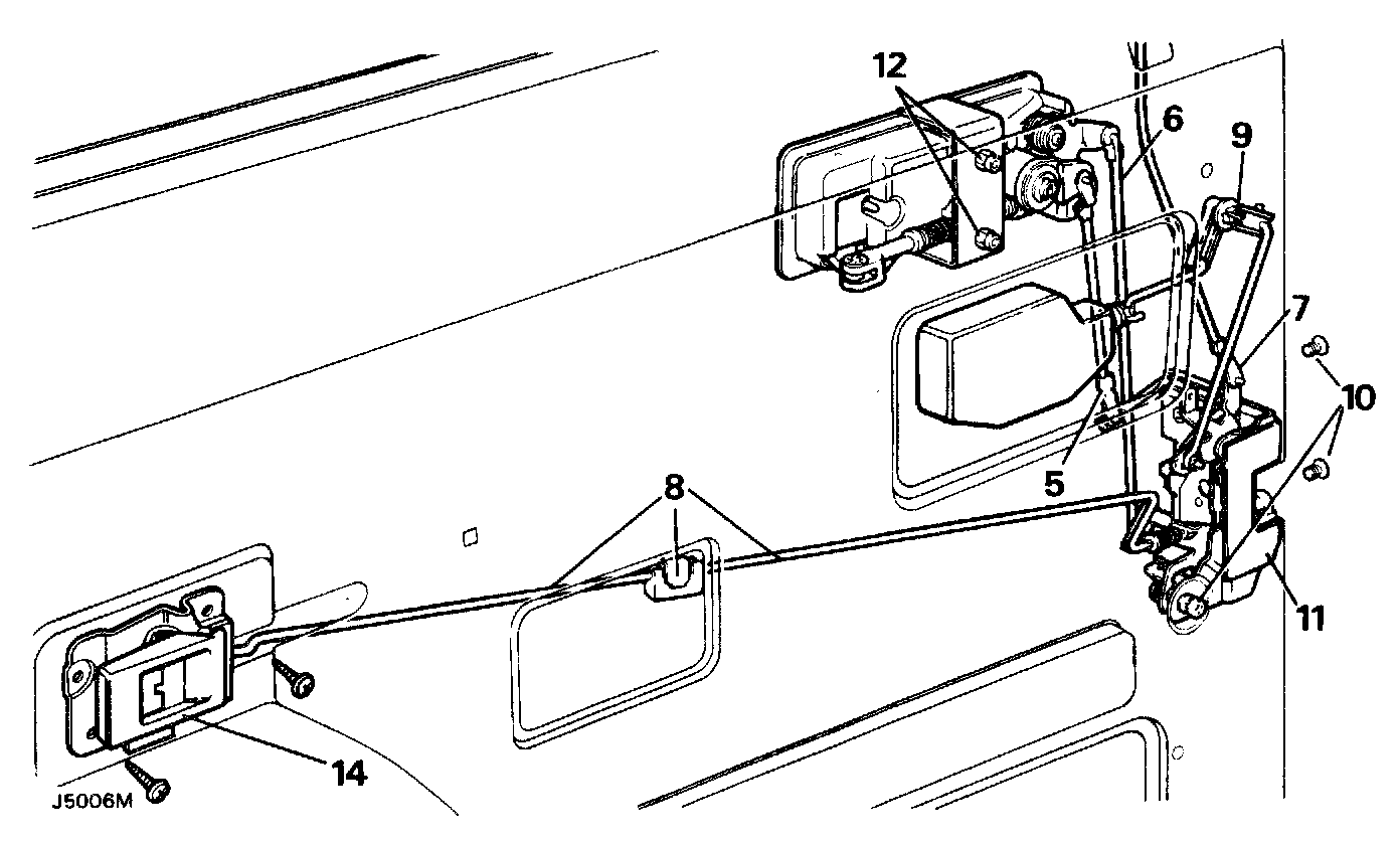 6. Disconnect the control rod from the outside door release handle by pulling it out of the plastic ferrule.