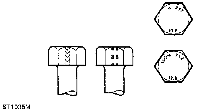 2. In addition to marks to identify the manufacture, the head is also marked with symbols to indicate the strength grade, e.g. 8.8, 12.9 or 14.9, where the first figure gives the minimum tensile strength of the bolt material in tens of kgf/mm2.