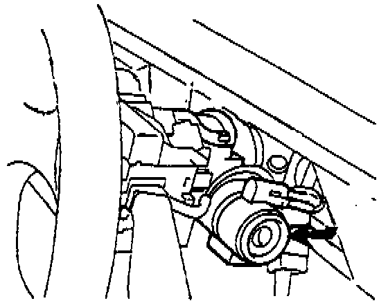 4. Refer to figure A. Ensure that the white multi-pin connector is attached to its mounting foot. The mounting foot is attached to the lock cylinder retaining pin. Grasp connector and pull towards front of vehicle to check security of the retaining pin. If the pin pulls out, the lock assembly must be replaced. (See parts information.)