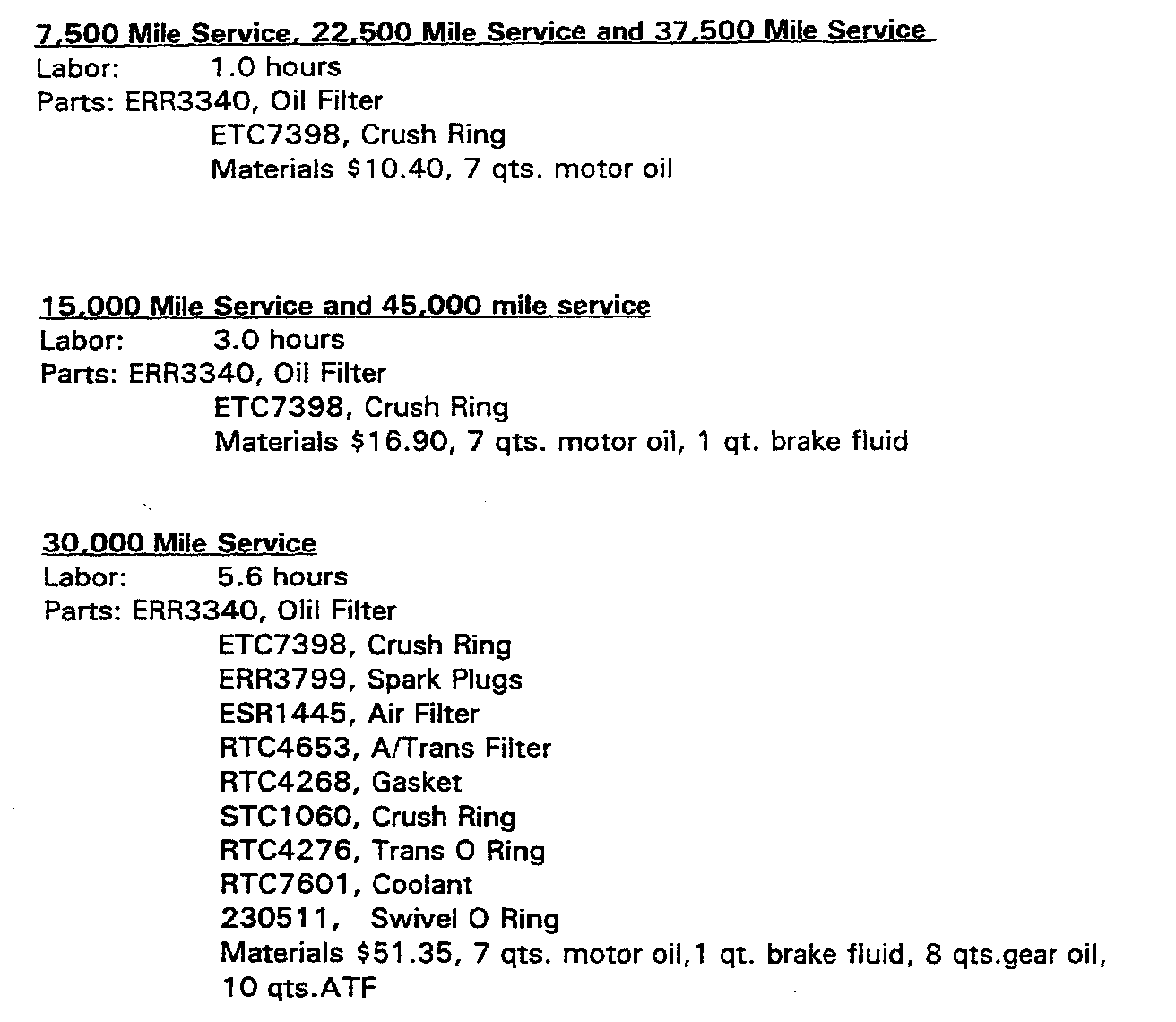 Note: Services are due to mileage listed or 6 month intervals, whichever comes first.