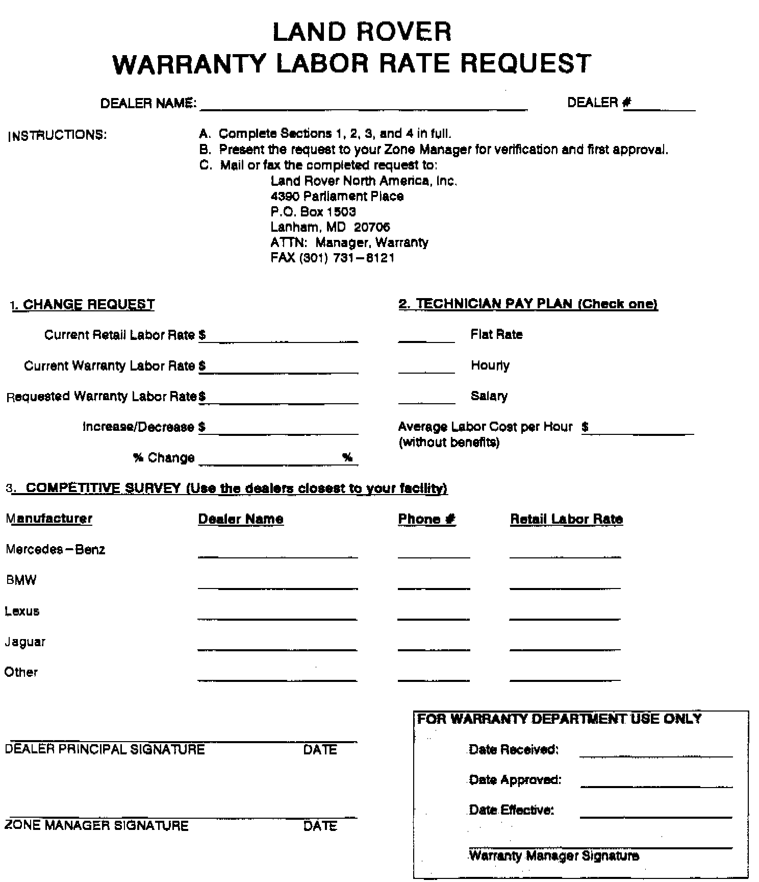 Effective June 6, please use these forms for requesting any changes to your Land Rover warranty labor rate.