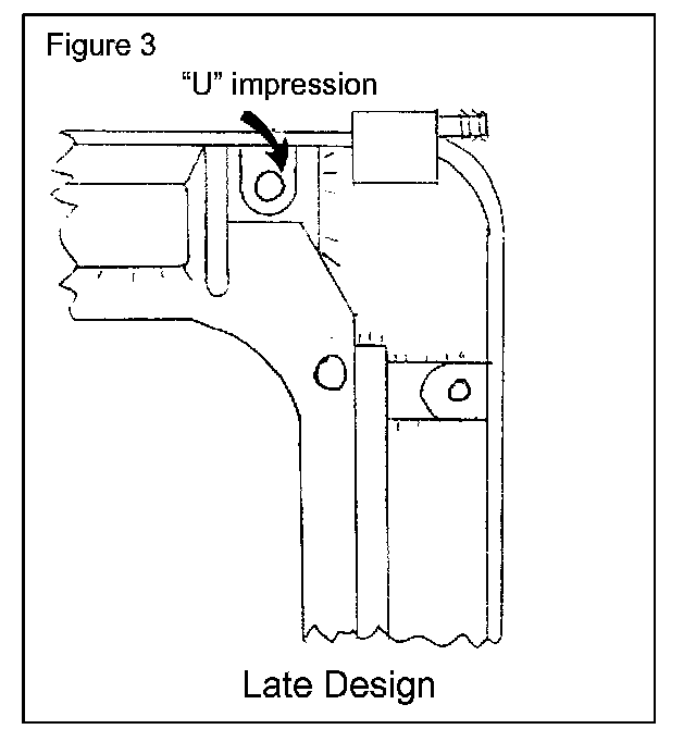 The later design lower tray has a 'U' shaped impression around the corner hole. (Figure 3)