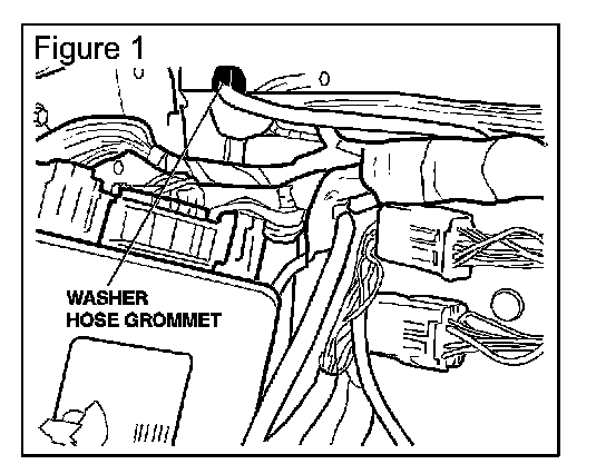 3. Install a new windshield washer hose grommet where it passes through the forward plenum wall (Figure 1).