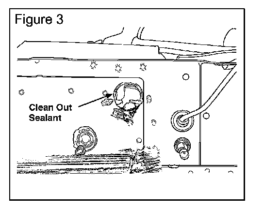 2. Seal the plastic grommet just below the drain for the plenum with windshield sealant LRNA10570 (Figure 3).