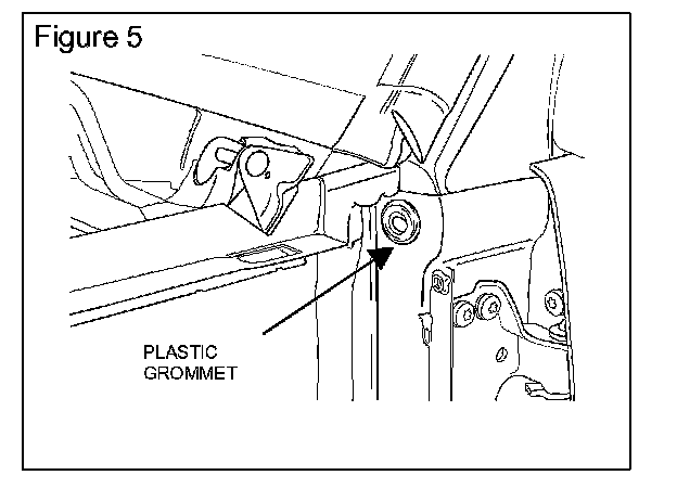 8. Seal the plastic grommet at the base of the A-pillar using Leak Chek (Figure 5).