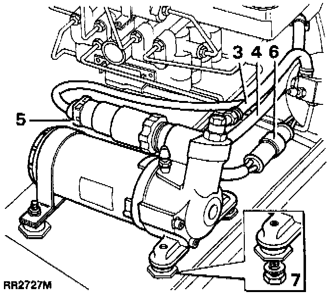 4. Loosen the hose clip and disconnect the low pressure suction hose to the reservoir, clamp the hose to present fluid and ingress of debris.