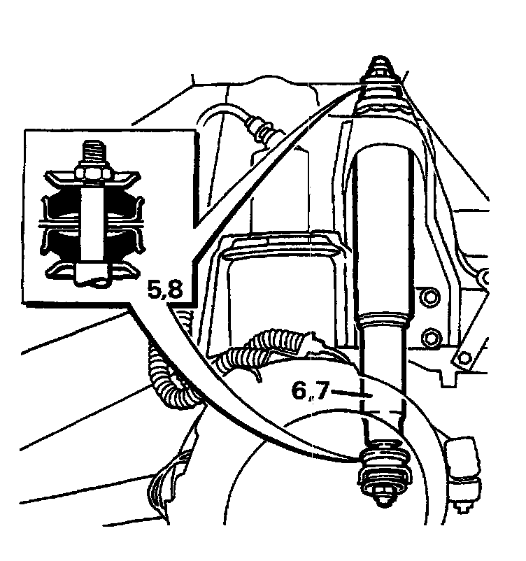 CAUTION: Do not lower axle when damper is removed, this may result in damage to air springs.