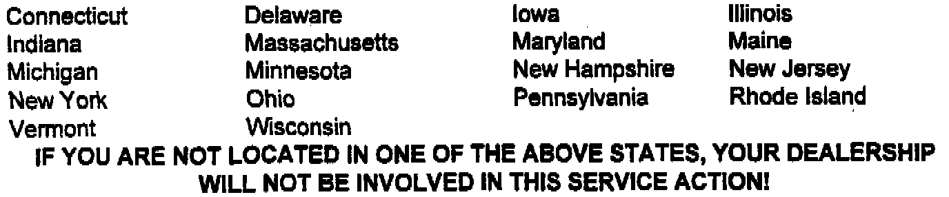 Because of the regional and seasonal nature of this problem, only customers in the following states will be notified of the need for the upgrade:
