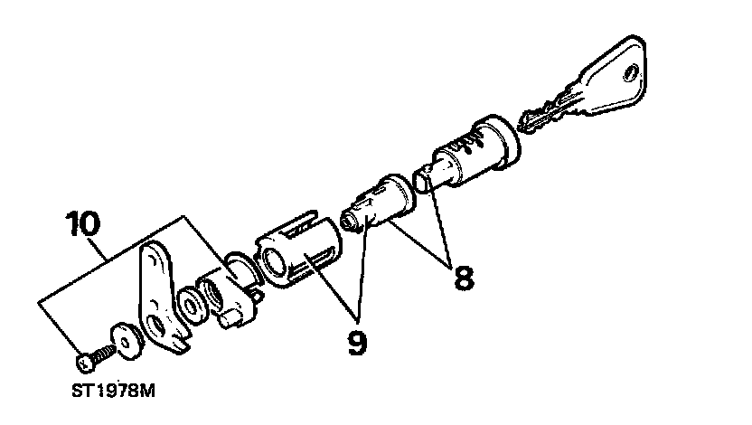 10. Assemble lock lever components as illustrated and from inside of door panel, fit them to barrel assembly with single screw.