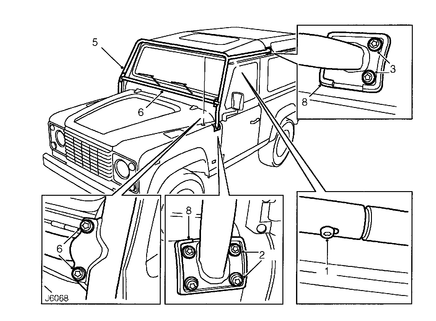 8. Ensure rubber gaskets are fitted correctly to roll-over bar mounting brackets.