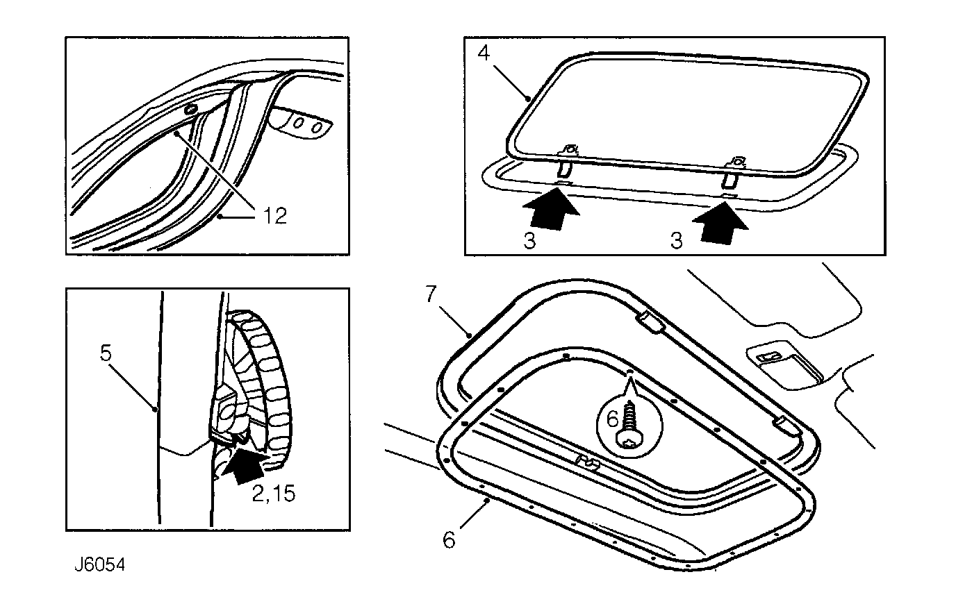 11. Check alignment of inner and outer frames with root mounting and headlining, adjust as necessary, and fully tighten fixing screws to 10 Nm, 7 lbf ft.