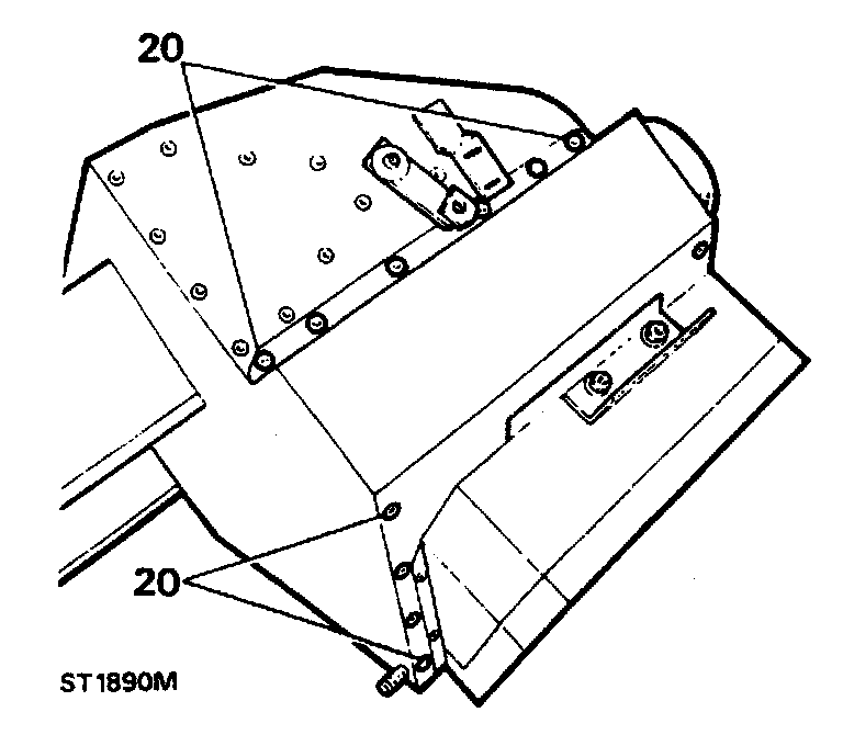 20. Drill out rivets holding the air duct and top cover to the casing. (Three of the rivets are concealed by the rubber seal).