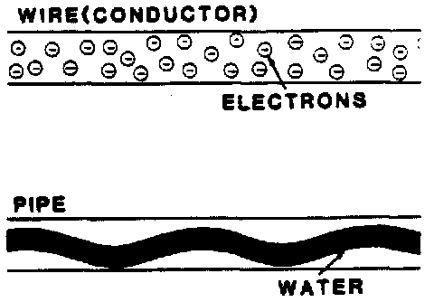 A storage battery and a water tower are similar, they both provide pressure. The battery is a source of electrical pressure and the water tower supplies water pressure. In other words, voltage is simply electrical pressure. And, it's voltage that pushes electricity through the wires in a circuit just as pressure pushes water through the pipes in a plumbing system.